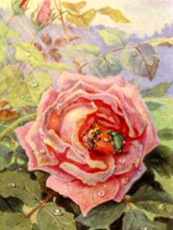 Es wurde sehr kalt, der Tau fiel, und der Wind wehte. Nun war es das Beste, nach Hause zu kommen. Der Elf tummelte sich, was er konnte, aber die Rose hatte sich geschlossen, und er konnte nicht mehr hineingelangen. Keine einzige Rose stand geöffnet. Der arme kleine Elf erschrak sehr. Er war früher nie des Nachts ausgeblieben, hatte immer so süß hinter den warmen Rosenblättern geschlummert. Oh, das würde sicher sein Tod sein!